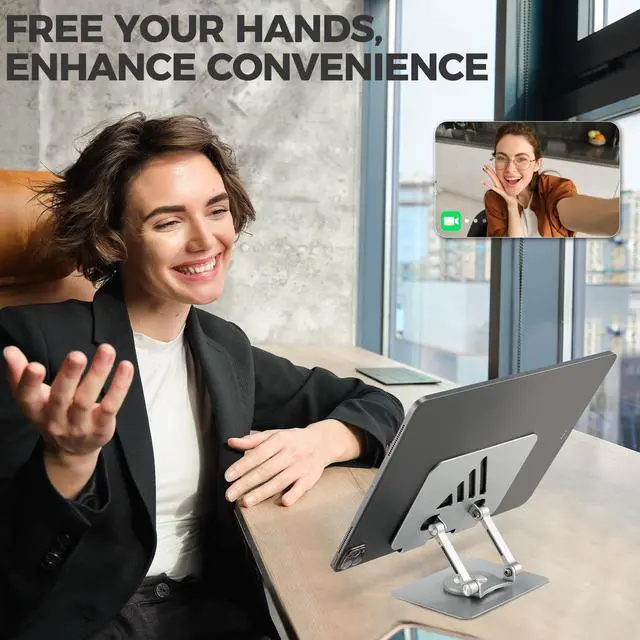 Its sturdy structure and adjustable angles make it suitable for various settings, from work to entertainment and leisure. It also supports multiple devices, including iPad Pro, iPad Mini, iPad Air, and other tablets, smartphones, and laptops ^^ Portable DesignThe stand features a lightweight and foldable design, allowing you to carry and use it anywhere. Whether for travel, office, study, or home use, it folds easily into your bag, providing stable support for your devices whenever needed ^^ Cooling ProtectionThe tablet stand features a hollow design, providing natural cooling channels to maintain stable device temperatures.