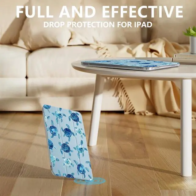High Quality&Perfect Fit: This Cute Blue Sea Turtle case for ipad is made of soft silicone on the front and durable TPU on the back. It has a comfortable lining that can protect your pad from scratches and bumps. Meanwhile, this cartoon animal print cover for ipad is perfectly tailored to easily access all controls and functions (camera, speakers, ports, and buttons) ^^