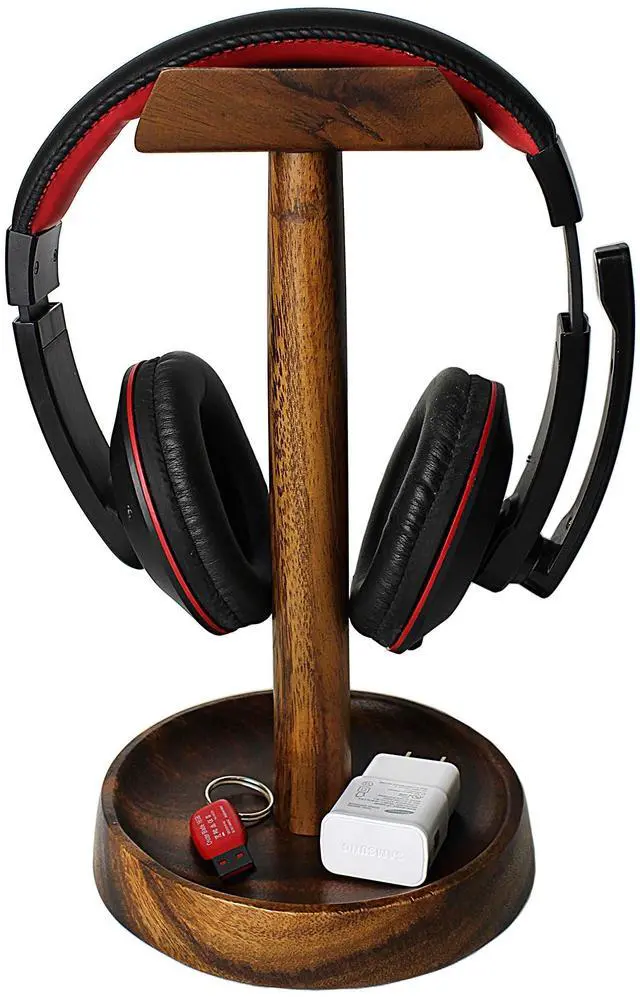 Handcrafted Acacia Wood Build Each Wrightmart wooden headphone stand is carved from solid Acacia wood with a wide base and natural finish. Durable, stable, and stylishan elevated alternative to plastic or metal holders. ^^ Smart Tray for Essentials The built-in tray doubles as a desk organizer for USB drives, cables, coins, dongles, or wireless earbuds. Perfect for keeping gaming and work accessories neatly in reach.