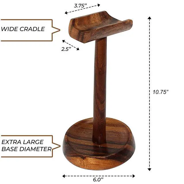 ^^ Headset Stand Assembly: Wrightmarts headphone holder is super easy to assemble with just 3 parts; a heavy-duty solid Acacia wood base and an Acacia wood cradle and support strut; it safely supports headsets. ^^ Universal Compatibility Designed as a versatile headset stand for all major brands: Sony, Bose, Beats, Razer, Corsair, Sennheiser, and more. Fits over-ear and on-ear headphones with ease. ^^ Gaming & Workstation Ready Ideal as a desk headphone stand for remote workers, hybrid professionals, and gamers. Works as a headphone and controller stand, headset and controller stand, or simple headphone holder desk accessory. ^^ Tool-Free Assembly in Seconds Quick, zero-tool setup with just three parts: wide Acacia base, upright support, and cradle. Compact 6" x 6" footprint saves space on desktops, gaming stations, or studio setup ^^