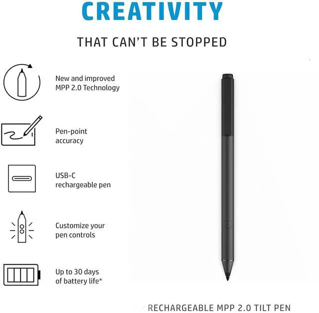 HP Tilt Pen 2MY21AA 929863-001 - Unleash Your Creativity Experience natural writing and drawing with the original HP Tilt Pen. Designed for HP's premium 2-in-1 convertible laptops, this active stylus delivers precision, pressure sensitivity, and tilt functionality for a true-to-life creative experience.