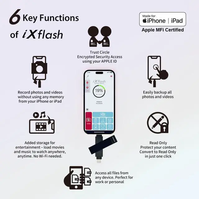 Plus, you can attach a USB-C to USB-A adapter and its compatible with all devices that have a USB-C or USB-A connection, including computers, TVs, non-Apple smartphones and tablets, and more. ^^ [Instant Photo Backup and Storage] Free up space on your iPhone or iPad by transferring photos, videos, and Live Photos directly to this external photo storage device. Maintain metadata and image quality with this reliable photo USB storage for iPhone. ^^ [Data Security with Encryption and Read-Only Mode] Protect sensitive data with patented Trust Circle AES 256 Key-Lock encryption and Read-Only mode.