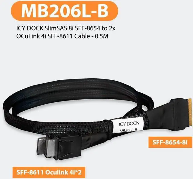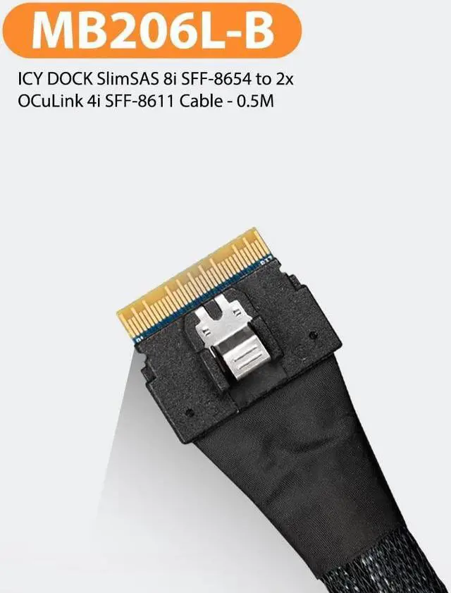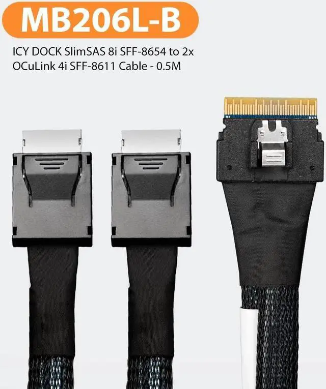 ICY DOCK SlimSAS 8i SFF-8654 to 2X OCuLink 4i SFF-8611 Cable - 0.5M