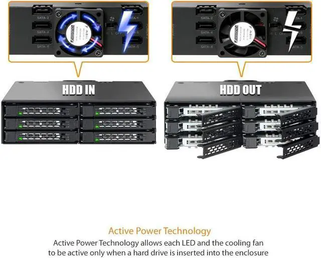 Fits 6 x 5mm to 9.5mm 2.5 SATA HDD or SSD in a single external 5.25 bay for high performance RAID applications.
