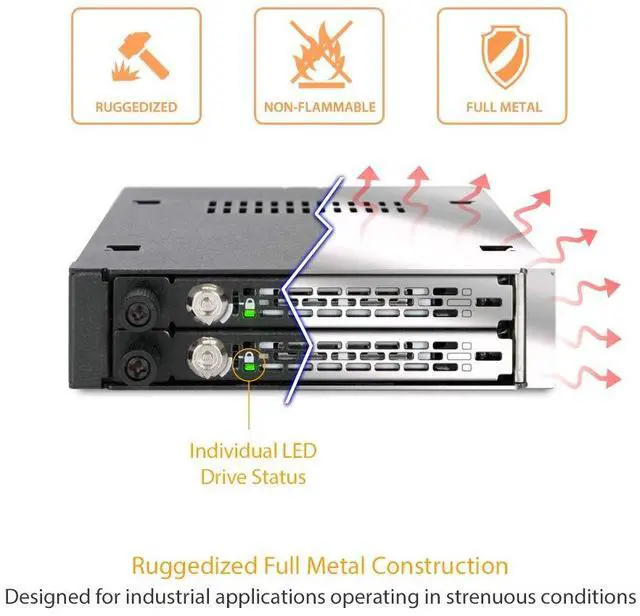 ICY DOCK Rugged Full Metal 2 x 2.5 SATA/SAS HDD & SSD Mobile Rack for External 3.5" Drive Bay with Key Lock & Thumb Screw Design ^^ ToughArmor MB492SKL-B