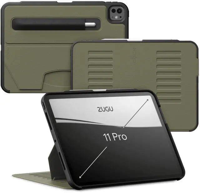 Zugu Case for iPad Pro 11 (M4/M5) 2024/2025, Slim Protective Cover with Apple Pencil Holder, Auto Wake/Sleep, Multiple Viewing Angles, iPad Pro 11 Inch Cover, Phone Protector, Olive Green