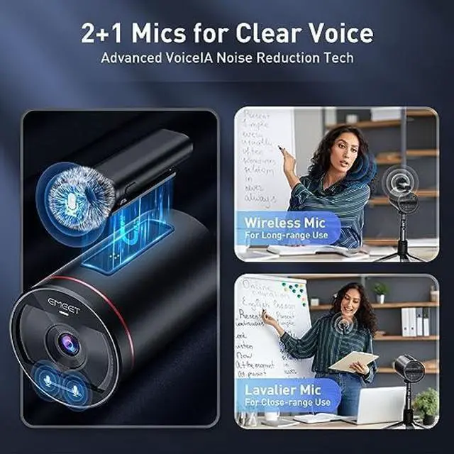 [Wireless Microphone for Clear Voice Pickup] Our wireless live streaming camera comes equipped with two built-in mics and one detachable magnetic mic. The magnetic mic can be attached to the camera or used as a lavalier microphone, providing clearer voice pickup when you're on the move and helping you create high-quality video content or live streams. This unique feature sets our camera apart from the competition and ensures superior audio quality.