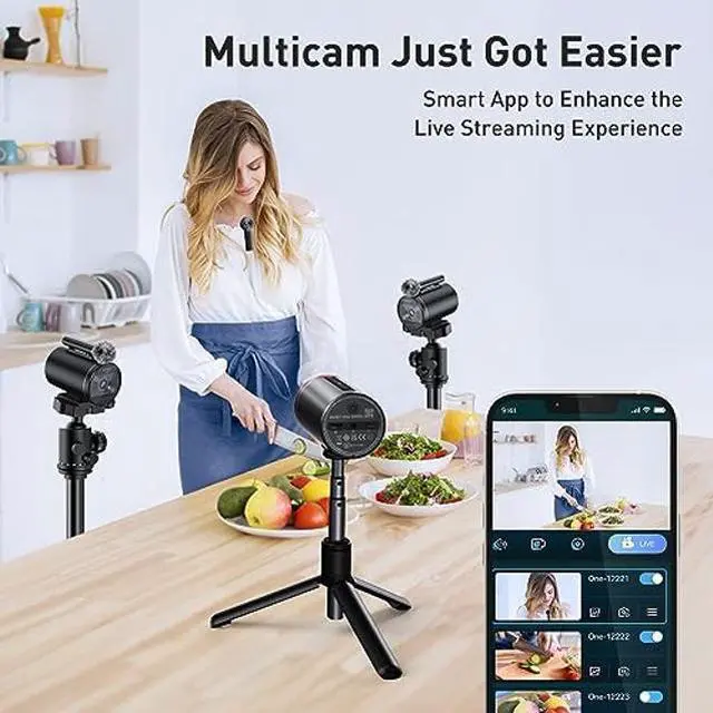 EMEET StreamCam One Wireless Streaming Camera with Tripod, 1080p HD Video Quality, Intelligent App Control, Multi-cam Support, 1 Detachable Mic & 2 Built-in Noise Reduction Mics, 8H Streaming Battery