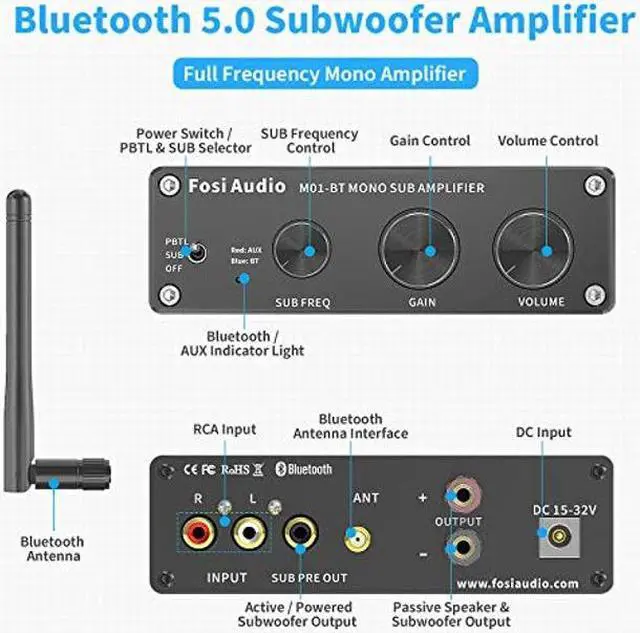 Upgraded Design: Add Bluetooth to a subwoofer amplifier. M01-BT support Bluetooth and RCA input can drive most home passive speakers, passive subwoofers, and powered subwoofers. (Note: M01-BT is not suitable for active speakers). Easy to build a simple sound system with M01-BT