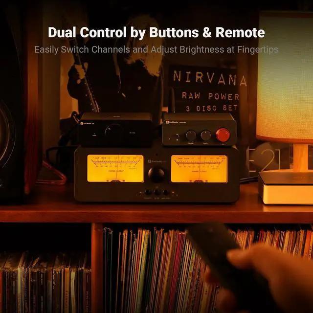 ^^ Ease of Use: Offers both button and remote control operation, enabling one-tap switching between two amplifiers and two speakers. It streamlines the process of A/B comparison testing for two amplifiers or speakers, ensuring straightforward accessibility. Moreover, adjusting the backlight brightness and needle sensitivity is made effortlessly simple, enhancing the overall user experience.