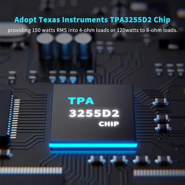 ^^ Advanced Audio Technology: The audio receiver utilizes the Texas Instruments TPA3255D2 chip, featuring an advanced integrated feedback design and proprietary high-speed gate driver error correction (PurePath Ultra-HD). This technology ensures ultra-low distortion across the audio band, delivering superior audio quality.