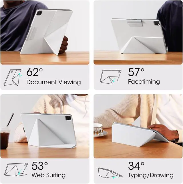 [4 Standing Angles] This iPad Pro 2024 case can be folded in two ways, providing four different standing angles for taking Zoom calls, web browsing, drawing, etc. The triangle structure of the multi-fold folio ensures a stable standing position, whether in portrait or landscape.