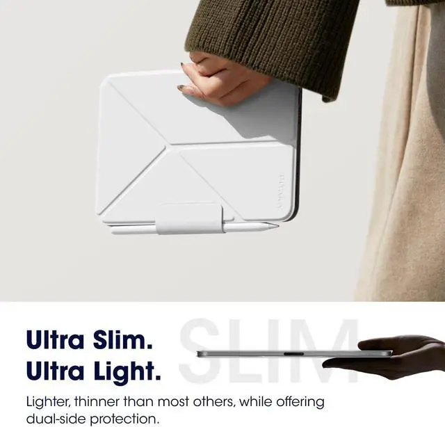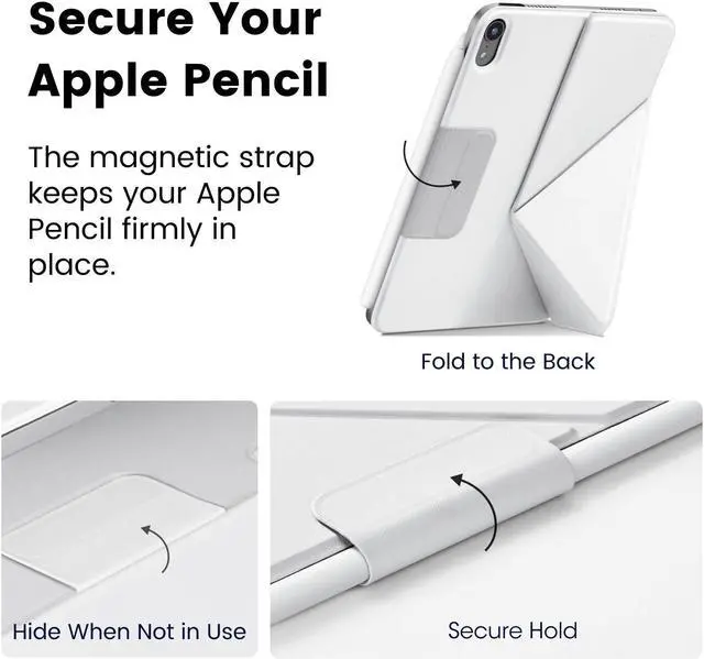[Magnetic Design & Built-in Pencil Holder] The Powerful magnets hold your tablet firmly. Use the magnetic clasp to secure your Apple Pencil. Or fold and hide it when not used. You may attach and charge your Apple Pencil 2 as usual