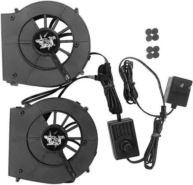 Coolerguys Dual Blower Fan Component Cooler with Manual Speed Control (Lite) We created this kit for use on components which have vents on the top of them, simply place the blower fans on top and it'll suck the warm air out of the device and shoot it out the back. Works great to cool Receivers, DVRs and other media equipment.