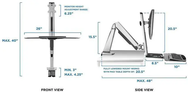 ADJUSTABLE HEIGHT ERGONOMIC WORK STATION - Move from sitting to standing in mere seconds with our easy-to-use gas spring arm system. Bring back control to your desk and work from more comfortable positions. Studies have shown standing and working is a healthier and more productive alternative. PLEASE INCREASE THE TENSION OF THE GAS SPRING ARM IF THE ARM DOES NOT STAY UP. DECREASE THE TENSION IF THE ARM DOES NOT COME DOWN.
