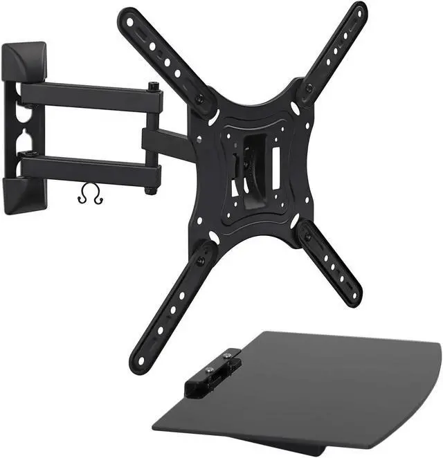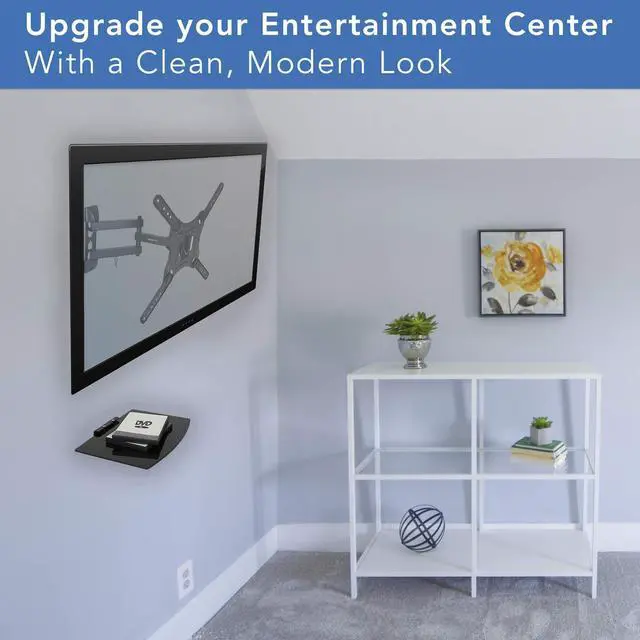 TV MOUNT and SHELF COMBO: Upgrade your entertainment center with this TV wall mount with shelf for a clean, sleek and minimalist look. Fits TVs up to 55 inches, with VESA patterns from 75x75mm to 400x400mm.