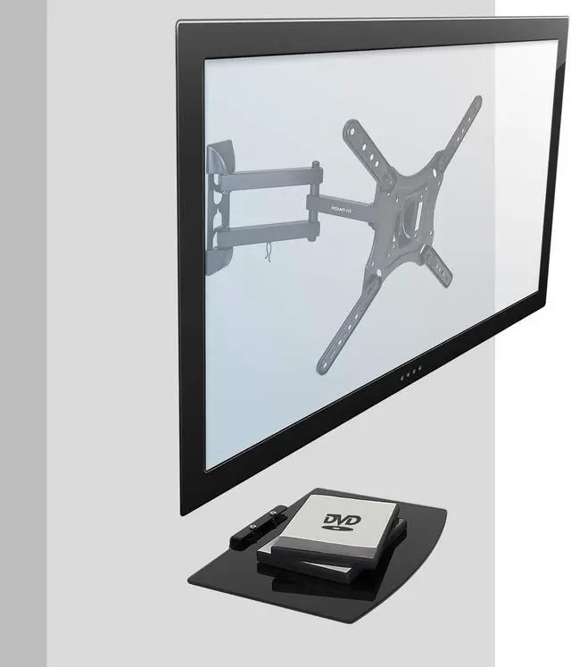 TEMPERED GLASS SHELF: Conveniently mount this shelf to the wall under your TV for an easier connection to your media devices. Platform measures 10"x14", holds up to 22lbs and is made of tempered glass for added safety.