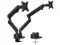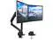 FULLY ADJUSTABLE: Two monitor stand arms can tilt up and down 90 degrees, swivel left and right 360 degrees, and raise/lower a total of 17.5 inches. Turn hex bolt on top of mechanical springs to set the counterbalance tension and hold screens in place.
