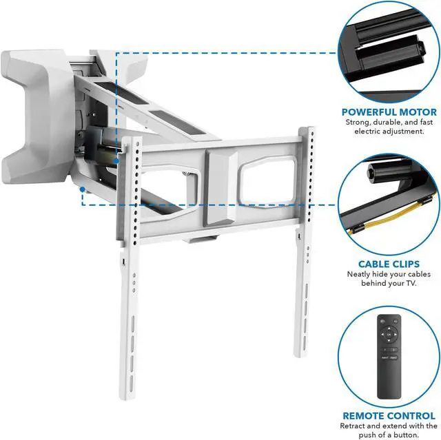 • HEAVY-DUTY MOTOR: Engineered with a heavy-duty, yet silent motor, this motorized TV mount with remote raises and lowers TVs up to 77 lbs (safety tested to 154 lbs), ensuring your vi