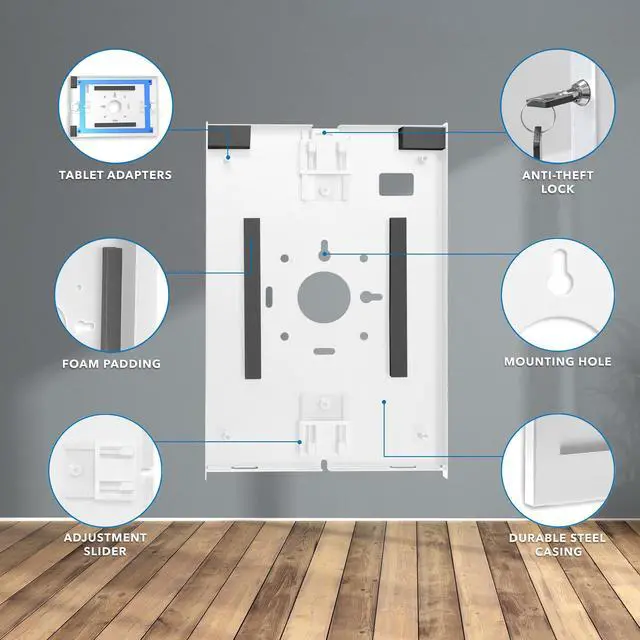 MOUNT): Features an internal slider system that adjusts to fit your iPad securely inside the frame. Once mounted, the enclosure remains fixed in place (does not tilt or swivel), ensuring a professional and tamper-proof setup. ^^