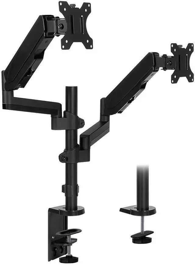 Compact Workspaces: This dual monitor desk mount supports side-by-side and vertical stacking configurations, making it perfect for traders, programmers, content creators, and gamers who need a space-saving multi-screen setup. ^^ Smooth & Adjustable Gas Spring Arms: Effortlessly adjust your screens with counterbalanced gas spring arms, allowing for seamless height, tilt (35), swivel (180), and full 360 rotation for optimal ergonomic comfort. ^^ Wide Compatibility with Most
