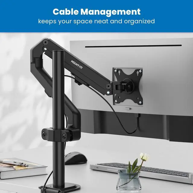 TWO MOUNTING OPTIONS: This monitor mount is as flexible as you need it to be. Whether you decide to mount it to the wall or to an existing pole, we got you covered! Installation brackets for both wall and pole are included with this single monitor arm so that you can create the workspace you desire. And to ensure that everything looks clean and organized, we added a cable management feature, too.