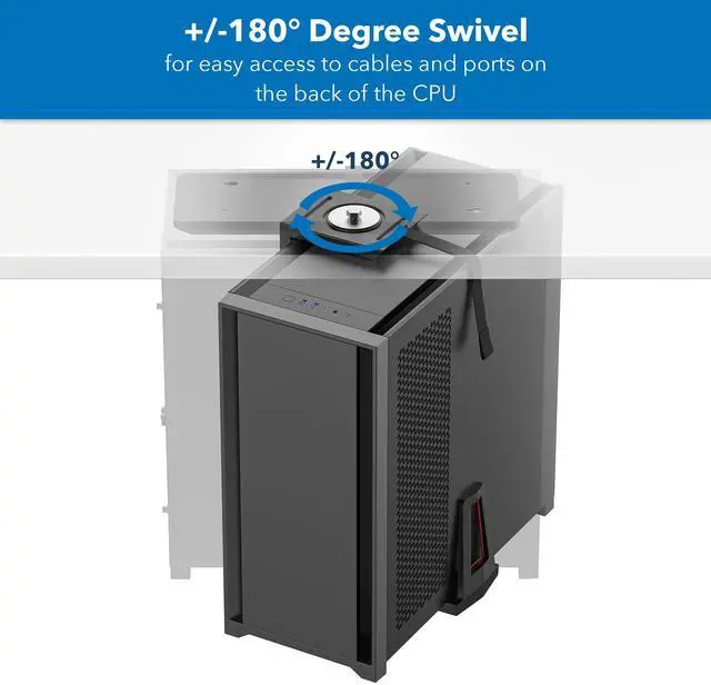EASY CABLE ACCESS: Thanks to the convenient integrated sliding track, you can easily pull forward your CPU and slide it back under your desk for secure storage. The swivel feature allows you to rotate the CPU bracket 180 left and 180 right for easy access to cables at the rear of your PC tower ^^