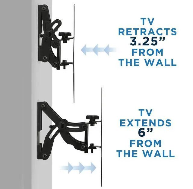 VESA TV MOUNT - Fits most 23-42" LCD/LED/OLED/Plasma TVs on the market (even up to some 50 inch TVs) up to VESA 200x200 and 66 lbs (Fits VESA 200x200, 200x100, 100x100, 75x75 mm). ^^ FULL MOTION Tilt up and down 30 degrees total to reduce glare. Swivel left and right 60 degrees total. Extends up to 6 inches from the wall. ^^ UNIVERSAL FIT - Compatible with Samsung, Sony, LG, Sharp, Insignia, Vizio, Haier, Toshiba, Sharp, Element, TCL, Westinghouse 23, 24, 27, 30, 32, 40, 42 inch TVs.