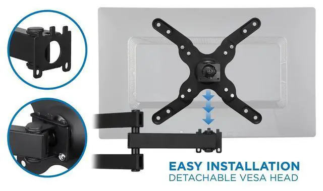QUICK RELEASE TV MOUNT: Easy to install to a single wall stud. Quick-disconnect feature allows the arm to be installed first, followed by the TV with the TV bracket.