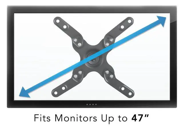 FULL MOTION TV WALL MOUNT: Articulating arms with adjustable 15 deg tilt up and down; 180 deg swivel left or right. Extends 1.75 to 15" from the wall. 360 Deg rotation for landscape and portrait orientation. ^^ UNIVERSAL