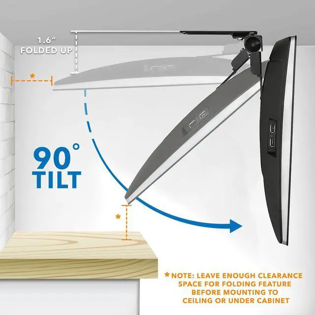 Space-Saving Flip Down TV Mount: This folding TV mount stows away to just 1.6 inches when folded, saving space in kitchens, offices, and other compact areas.