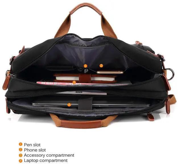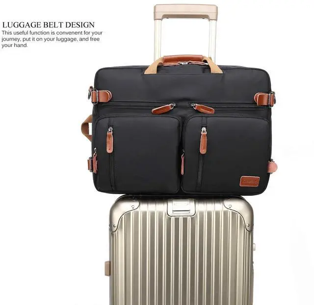 Dimensions: 18.8 x 5.1 x 13.7 inches; Fits up to 17.3 inches laptop. Still more room for you to keep 2-3 days summer clothes, ideal design for travel, business trip or work. ^^ 3in1 convertible design. You could use it as backpack shoulder bag and messenger bag. Also the straps can be hidden when you use it a messenger bag and shoulder bag. Why you should choose this bag: one bag pay and getting three bags use! ^^ 4 outside pockets, convenient to organize your items you want to carry, Just forget the pain point of finding things anywhere! ^^ Roomy laptop compartment and accessory compartment. Special design laptop compartment with Telescopic belt provides more protection for your laptop. Still keep 3 days clothes for traveling. Roomy enough for your need. ^^ Lightweight design is easy for carrying. The top grab handle offers quick grab-and-go style. Ergonomic design ensures the dispersion of gravity of the fulled bag. THIS ITEM IS NOT INTENDED FOR USE BY CHILDREN 12 AND UNDER.