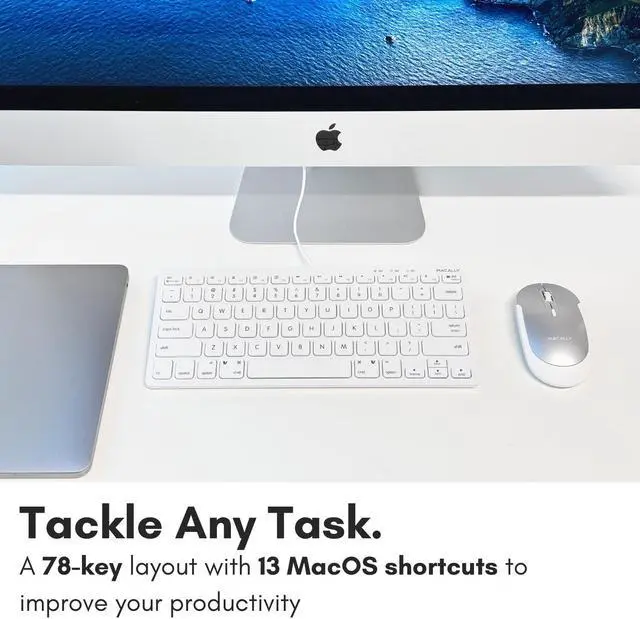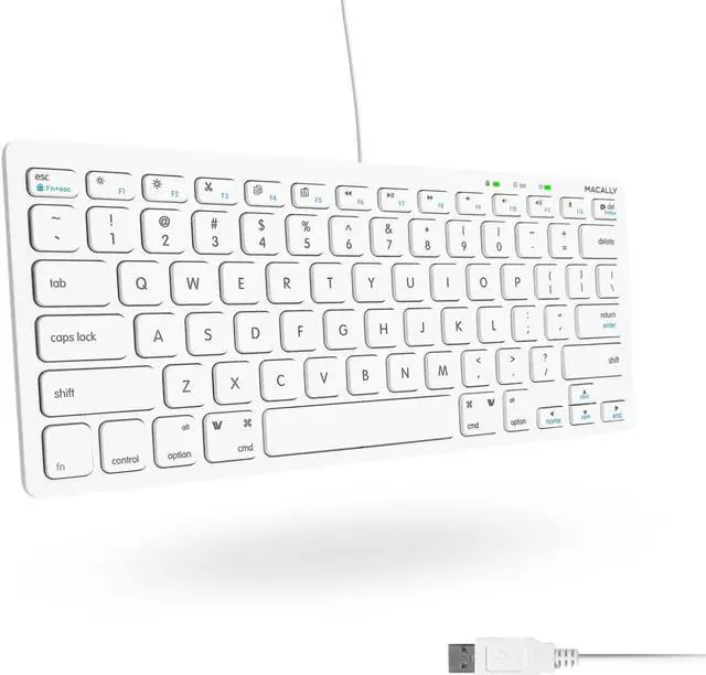 Macally USB Wired Keyboard for Mac and Windows PC - Plug and Play Apple Keyboard with 78 Scissor Switch Keys and 13 Shortcut Keys - Compact & Small That Saves Spaces and Looks Great - White