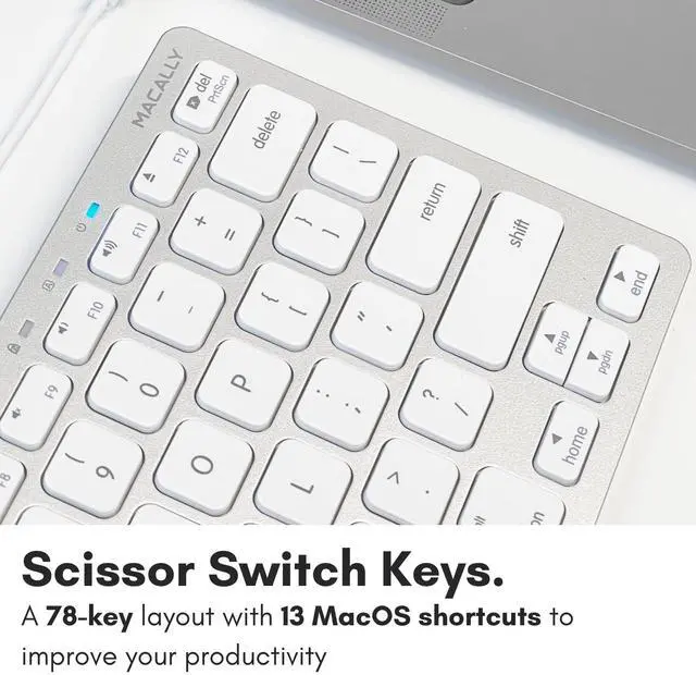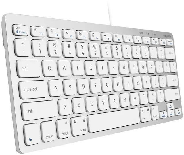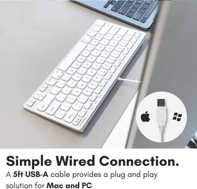 Macally Small Wired Keyboard for Mac and Windows - 78 Scissor Switch Keys Compatible Apple Keyboard - USB Mini Keyboard That Saves Space and Looks Great - Plug and Play Wired Mac Keyboard - Aluminum