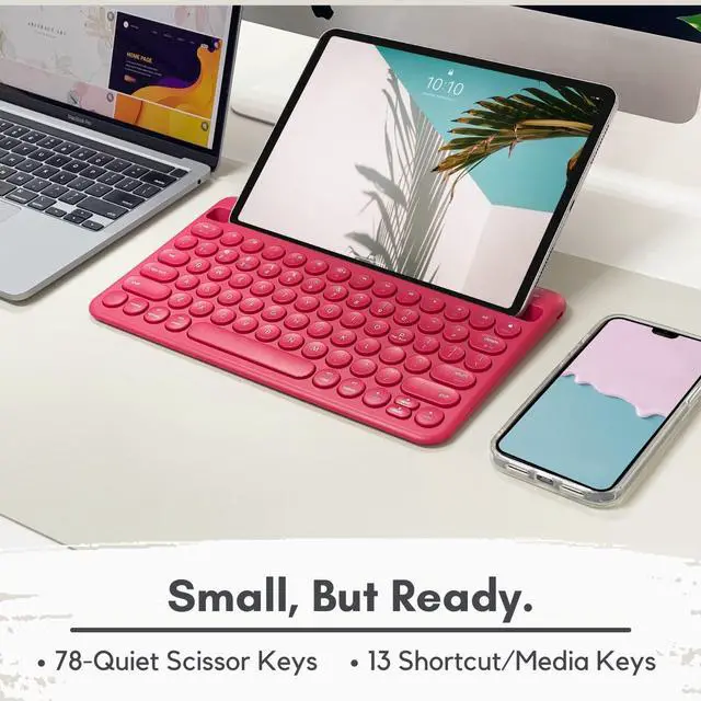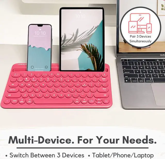 Sync and Switch Between 3 Devices: Enjoy seamless multi-device use and switch between 3 devices simutaneously with our wireless keyboard for tablet or smartphone, computer, tv, and etc.