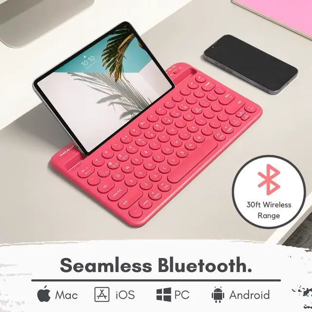 Macally Bluetooth Tablet Keyboard - Multi Device Wireless Keyboard for Phone, iPad Mini/Pro, Android - Rechargeable with Built in Stand and Quiet Keys