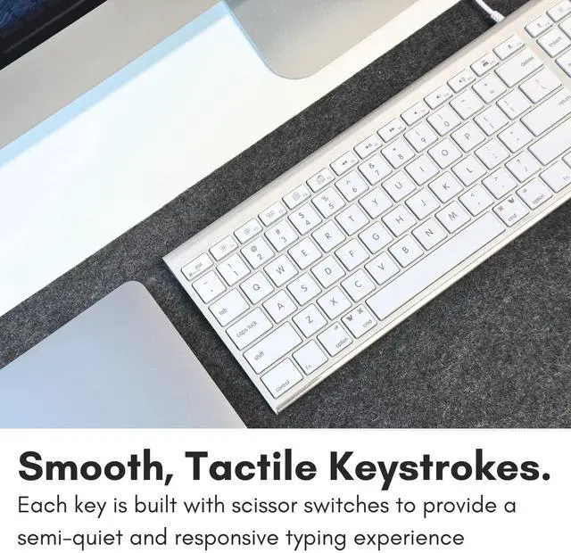 Comfortable and Quiet Typing: Our mac compatible keyboard is built with scissor flexor technology, offering comfort, quiet keystrokes, and responsiveness.