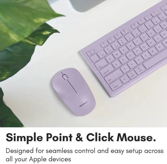 Macally Wireless Keyboard and Mouse Combo for Mac - Compatible Apple Bluetooth Keyboard and Mouse Combo for MacBook Pro/Air, iMac, Mac mini/Pro/Studio (Multi Device, Rechargeable, Emoji Keys, Purple)