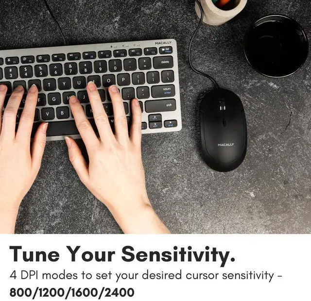 ^^ Easy DPI Adjustability: Easily fine tune the optical mouse to your desired sensitivity preferences. Choose between 800/1200/1600/2400 DPI by simply pressing the DPI button.