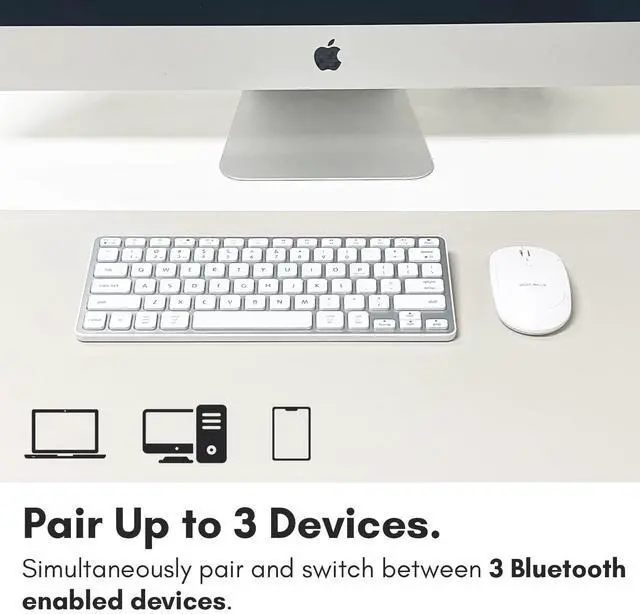 ^^ Small and Versatile: Save desk space or take it on the go. Our small bluetooth keyboard for Mac /PC/iOS/Android is universally compatible and fits in your bag at only 11.2 in x 4.6 in. ^^ Pair 3