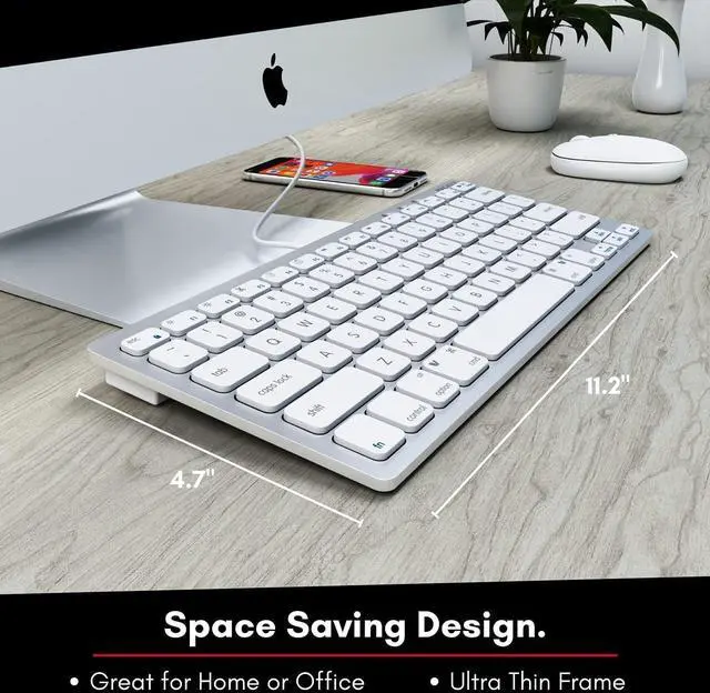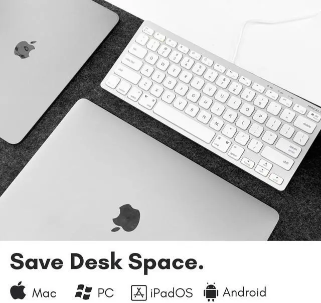 ^^ Save Desk Space: Throw our small keyboard for mac and pc in your bag and easily take it on the go or, enjoy simply enjoy more room on your desk.