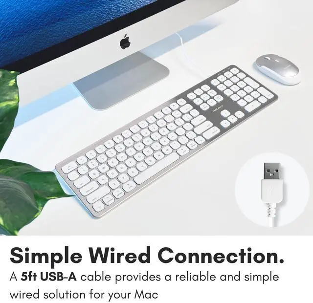 Mac: Enhance your workspace with a sleek and stylish mac wired keyboard. With a full sized layout and ultra slim aluminum design, you will be able conquer your workload and improve aesthetics. Matches Mac devices perfectly! ^^ Boost Productivity (2