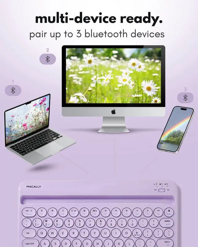 Devices: Enjoy seamless multi-device use and switch between 3 devices simultaneously with our wireless keyboard for tablet or smartphone, computer, tv, and etc. ^^