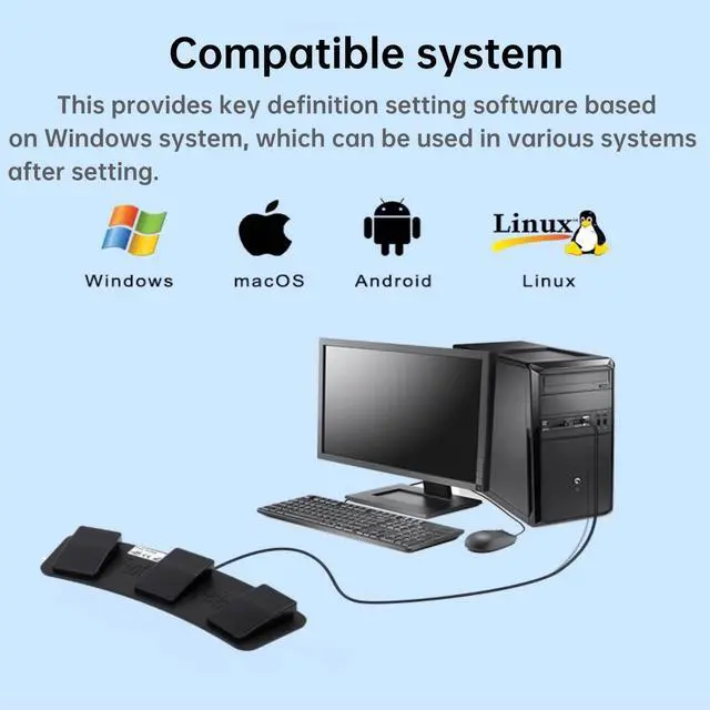 Programmable Keyboard: The foot pedal can be programmed to one key, key combination, hotkeys, shortcut keys, pause, forward, backward, volume+- function. This three-in-one foot switch is equivalent to a standard mouse or keyboard, and you can set up your own shortcut keys by downloading and installing software, which is full of personalization. This 3 key USB foot pedal can be based on the key definition setting software of Windows system.
