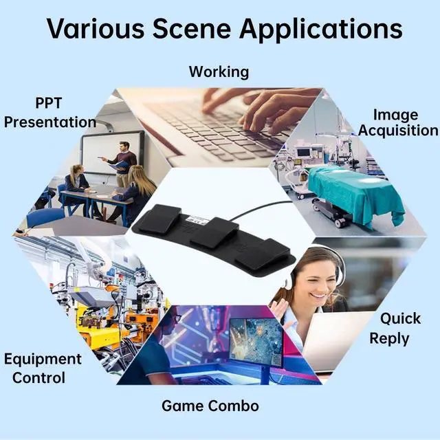 Widely Applicable: This programmable action keyboard pedal can be applied to a variety of scenarios, such as playing games, Photobooth, zooming, transcription key settings, factory testing, instrument control, media playback pause, hospital image scanning, and more, by setting