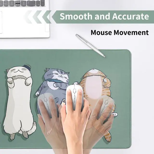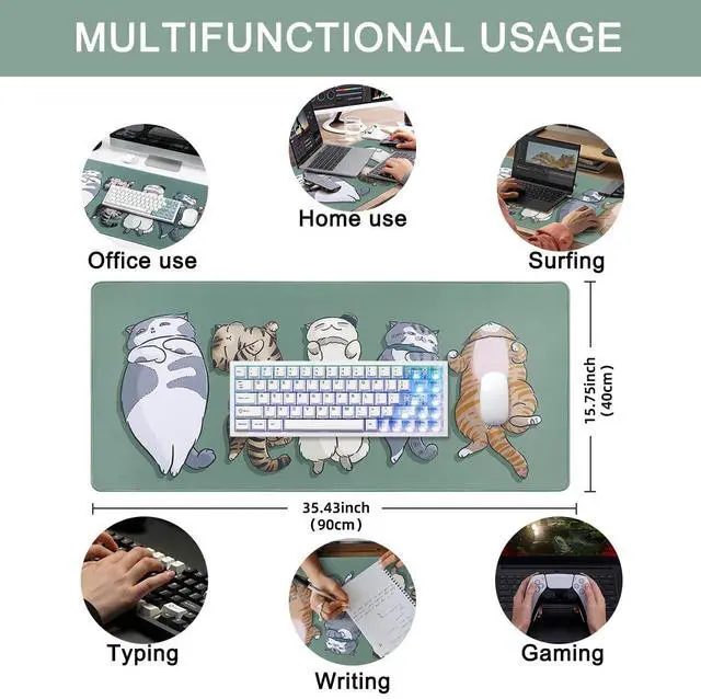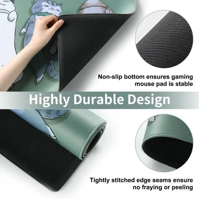 The size is large enough to accommodate your gaming, working desks. ^^ Waterproof and Easy to CleanThe mouse pad is made of waterproof coating material, it features on waterproof, oil-proof function, effectively protect your setup from scratches, stains, and spills. Easy to clean, just wipe with a wet cloth or paper. ^^ Non-Slip Desk PadThe large mousepad adopts non-slip rubber material, increase friction resistance with the desktop, Non slip. The friction resistance is increased by 70% than that of double-sided leather. They can be firmly fixed on the desktop to prevent unwanted sliding, also no fear of troubling moving.