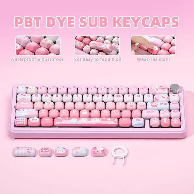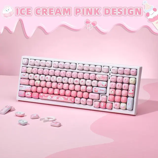 Pink Ice Cream Design: YUNZII MOG keycaps feature a pink ice cream design, with fresh and cute patterns that add lively and jumping colors to the keyboard, creating a playful and cheerful vibe for typing ^^ 5-Side