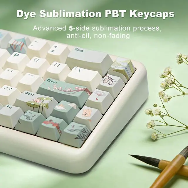 PBT KeycapsThe YUNZII keycap Set delivers in quality with ultra-durable PBT plastic whose legends will never wear away. Compared to ABS material, PBT is less common and feel textures and more more durable. It's dry and not easy to get oily ^^ Dye Sublimation TechniqueAs to ensure the impressive color scheme and enjoyable typing experience, the YUNZII keycap applies premium PBT dye-sublimation technology. The Dye-Sub PBT keycaps enhances the overall durability with water and dust resistance ^^ Standard Cherry ProfileDesigned with the popular Cherry profile, this keycaps set can work as the most basic and comfortable set.