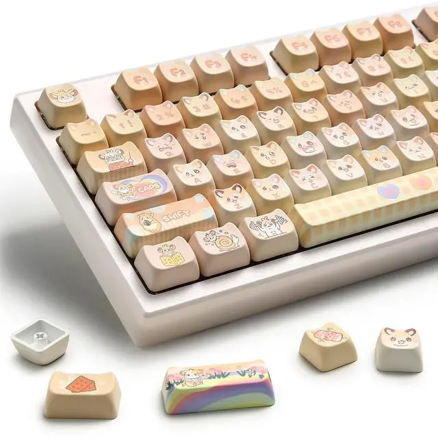 Unique Cat-Shaped Keycaps: YUNZII MAO keycap set is designed with a cat concert theme pattern, which makes you feel every character jumping like a musical note while typing. Meanwhile, the cat head shape of the keycaps makes your keyboard more lovely and special. The concave keycap design fits your fingers better, with a large contact area that is not easy to be touched by mistake. ^^ 5-Sided