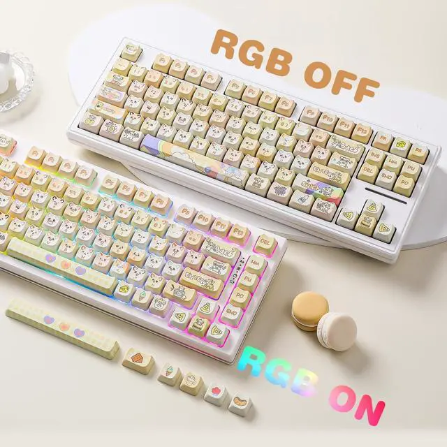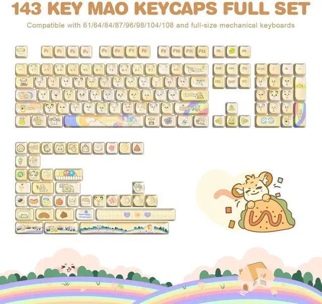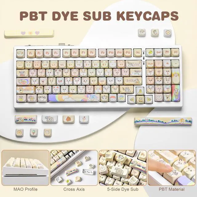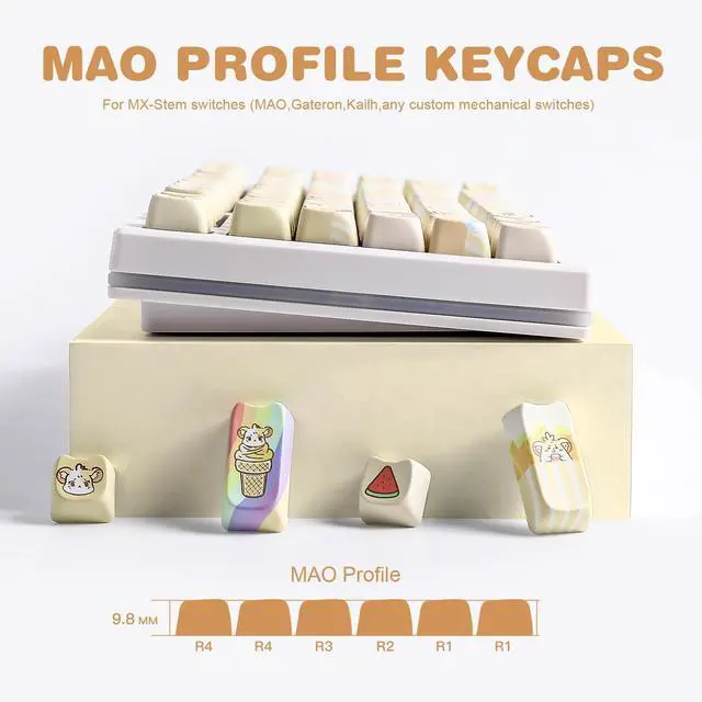 ^^ MAO Profile Keycaps: YUNZII Cute keycaps adopt MAO Profile, which is a comfortable height and increases the contact area of fingers, allowing users to strike in a natural posture and relieving fatigue from long-term keystrokes.